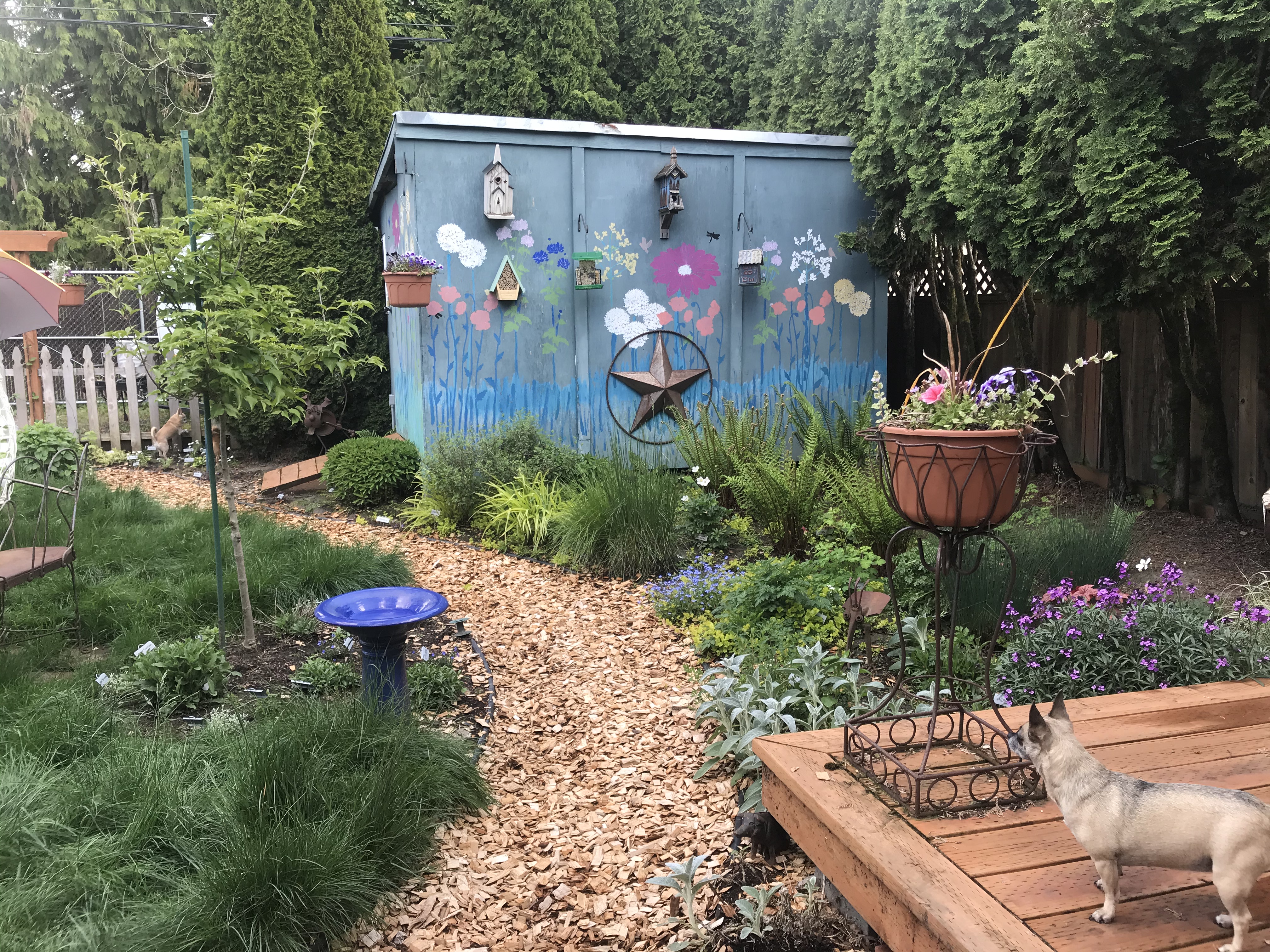 In April 2018, after living in Oregon less than a year, we tore out our back yard, which was a combination of grass and weeds, with a few random roses and ferns, and started to put in a cottage garden.